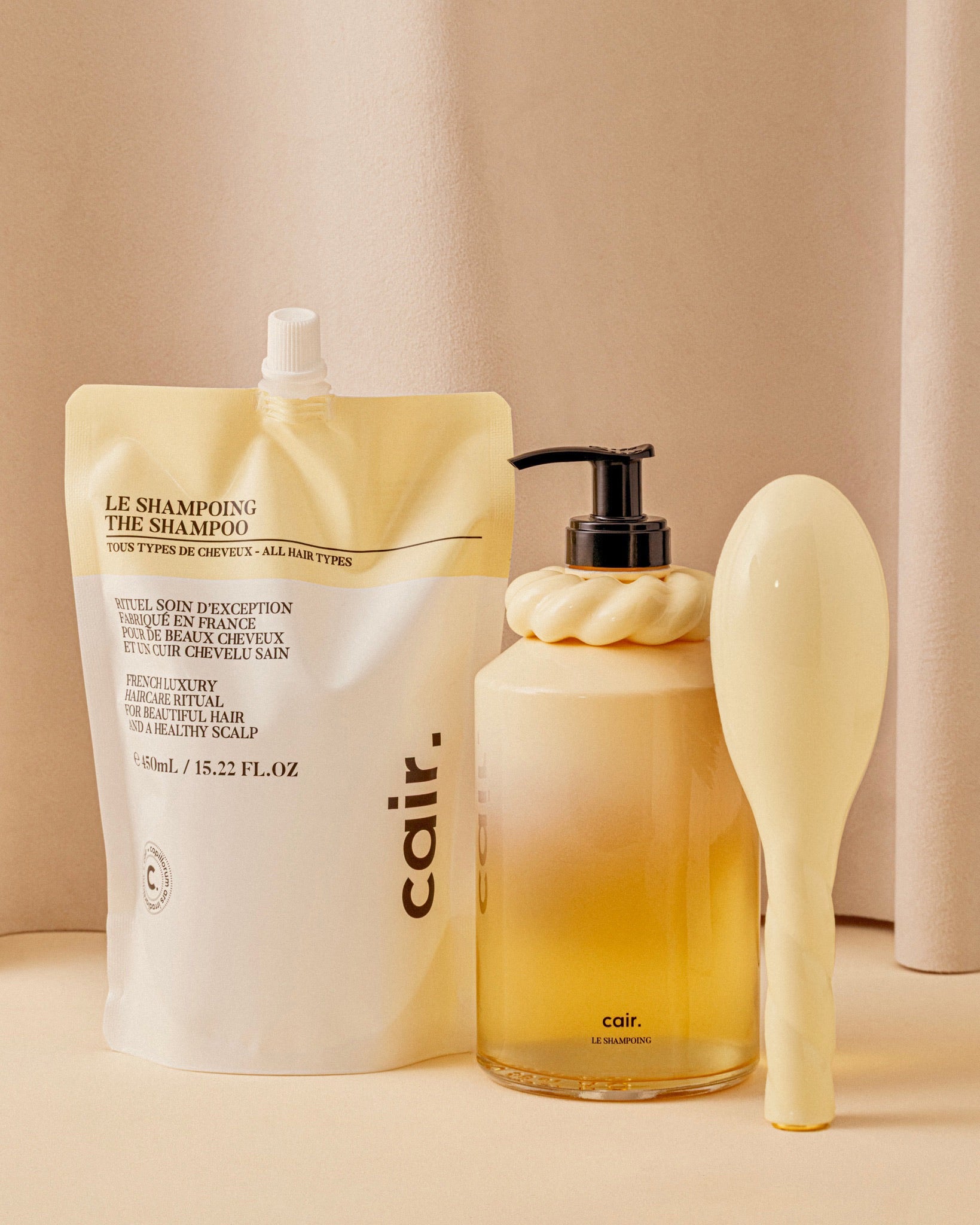 Offrez à votre chevelure un soin d’exception avec le Grand Duo Sublime, composé de la Petite Brosse Miracle N.04 Ivoire Cair, du Shampoing Cair grand format et de sa recharge offerte. Ensemble, ils purifient, massent et subliment les cheveux dès la première utilisation.